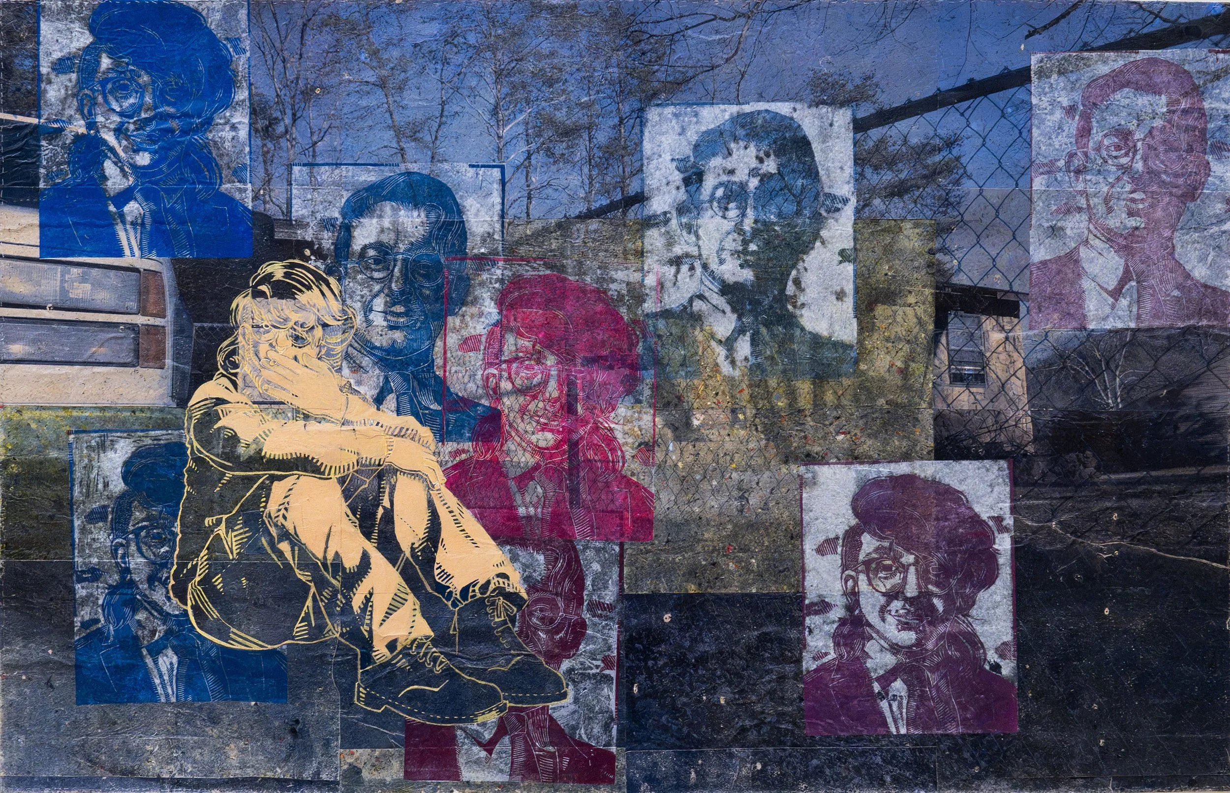 My practice is entirely cyclical, involving the making of my own paper substrate from physical refuse. This is coupled with the repetition of printmaking, stamping a block or screen printing, in order to process the psychological refuse and to document thoughts about my estrangement from my father’s family. What are the challenges of becoming a fully-formed adult in a world both the same and different as the ones they occupied had and have occupied, especially with such limited information about their inner lives? My face matches my grandfather’s, my uncle’s. But my father’s face looks nothing like mine. How can we solve fictions we know nothing about?